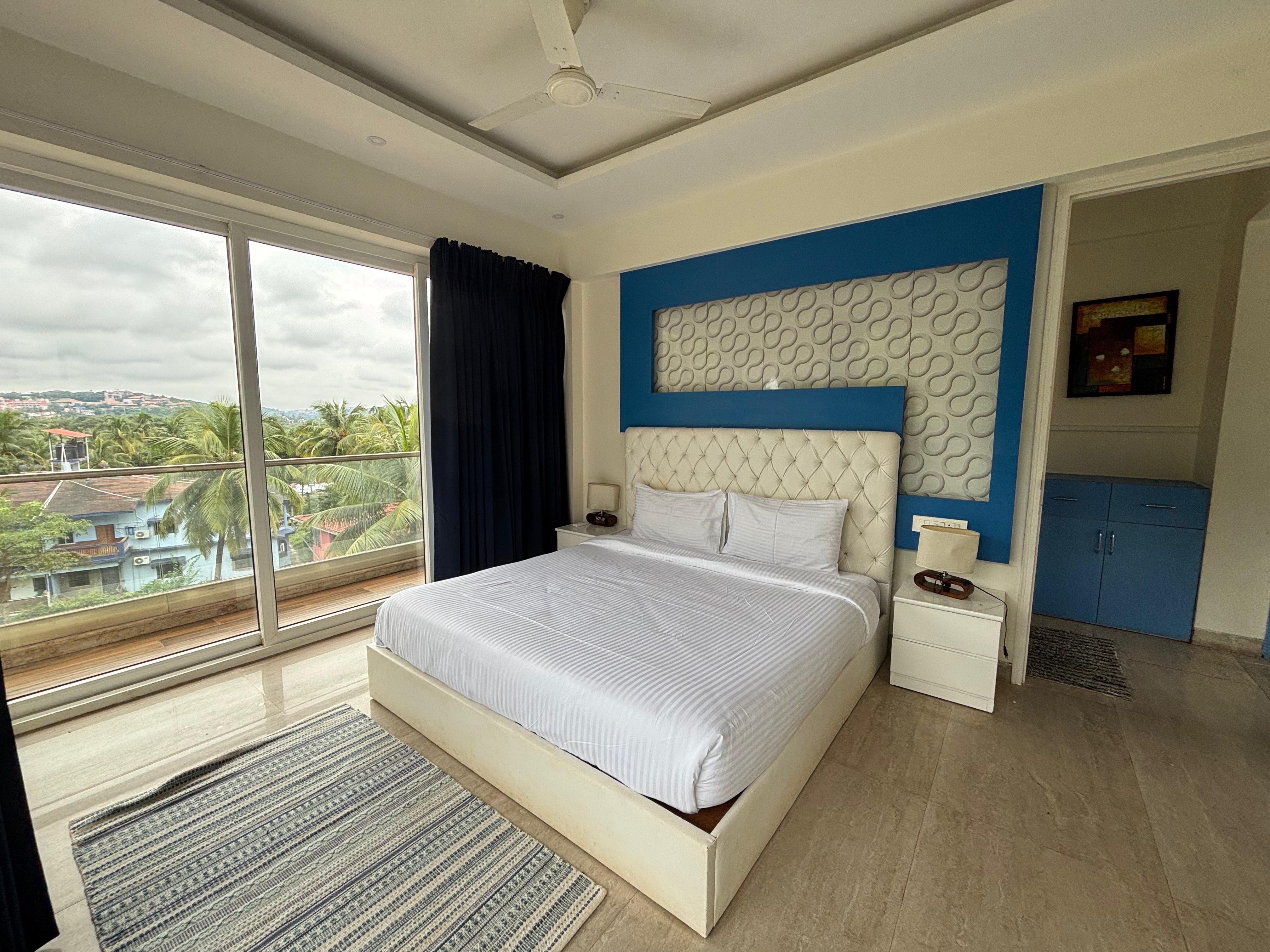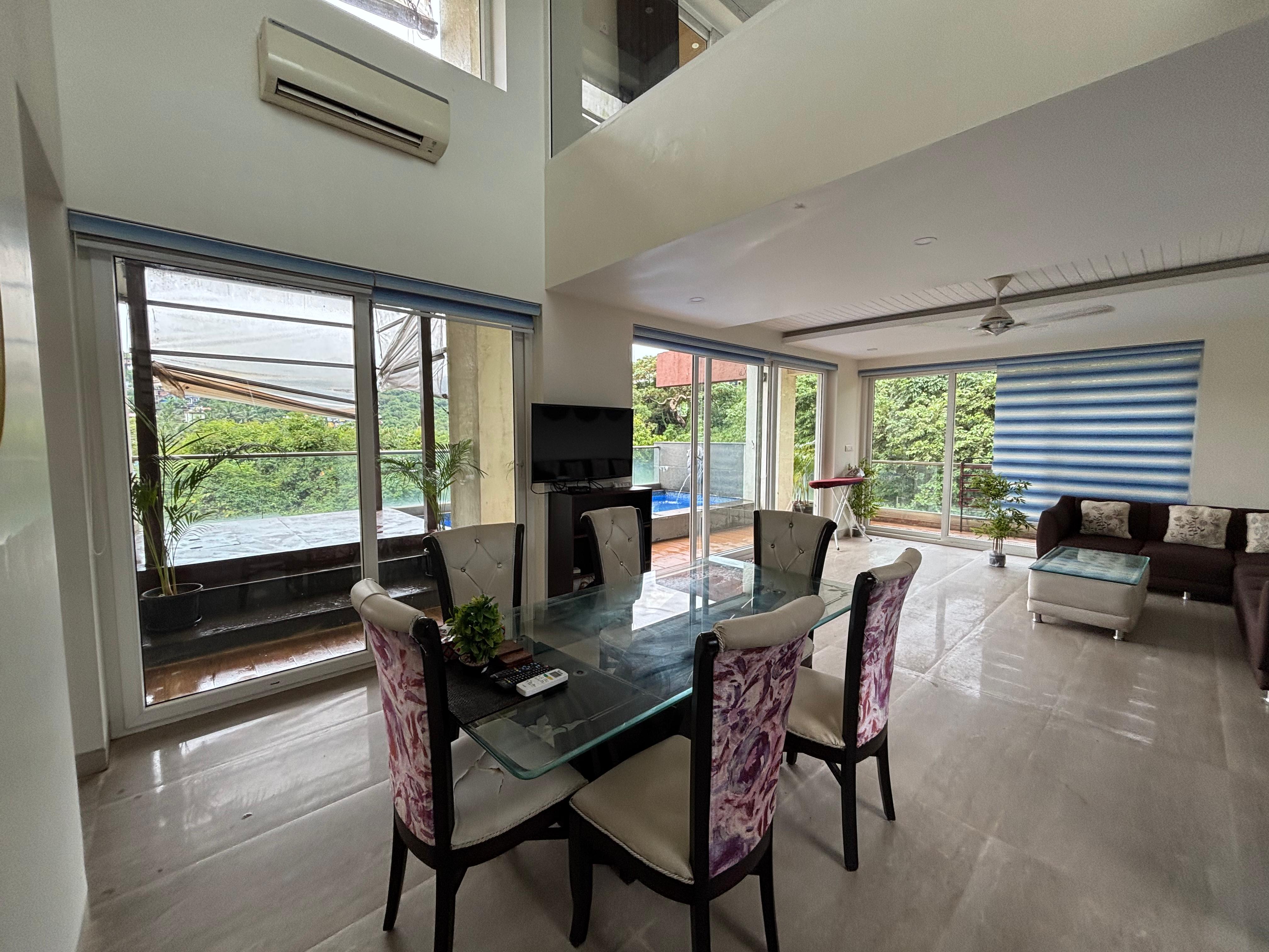 Located in a quiet residential area near the popular Candolim beach, this standalone building offers two available 3 BHK duplex apartments. Each unit features a living room with balcony, dining area, kitchen, one bedroom and a common bathroom on the upper ground floor, along with a private pool. The upper level includes a family lounge and two bedrooms with attached bathrooms and balconies. The building also includes an elevator and dedicated parking. Ideal for both long-term living and rental investment.